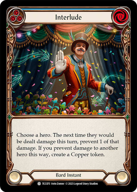 Only0availableSet: Round the Table: TCC x LSS Finish: Regular Type: Instant Rarity: Common Class: Bard Cost: 0 Choose a hero. The next time they would be dealt damage this turn, prevent 1 of that damage. If you prevent damage to another hero this way, create a Copper token.REFUND AND RETURNS POLICY