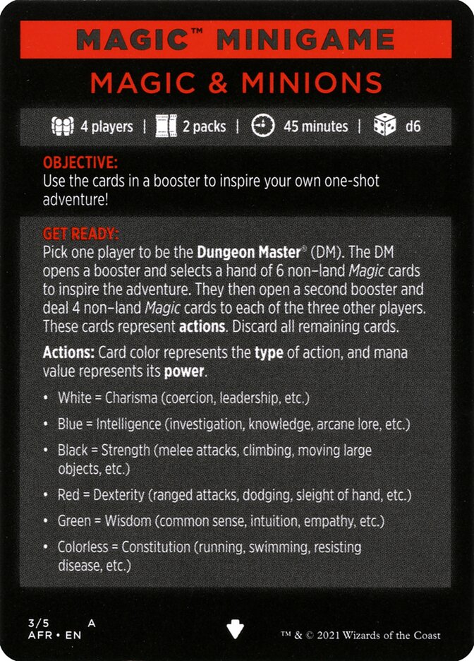 Only0availableSet: Dungeons & Dragons: Adventures in the Forgotten Realms Minigame Type: Card — Magic Minigame Rarity: Common 4 players | 2 packs | 45 minutes | d6